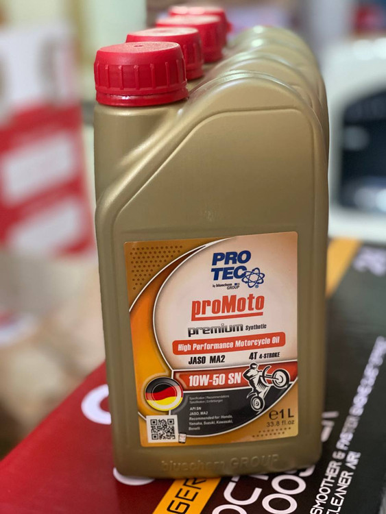 روغن موتور سیکلت پروتک PROTEC 10W 50 SN یک روان کننده با تکنولوژی تمام سنتتیک فعال است. روغن موتور پروتک دارای کارایی بالا است و با رعایت استانداردهای بین المللی API SN (بالاترین کیفیت) و JASO MA2 (استاندارد JASO MA2 کاراترین سطح اصطکاک برای تضمین درگیری کلاچ در حین سه حالت سواری را ارایه می دهد: استارت، شتاب (گاز دادن)، و سرعت ثابت.) توانسته است به یک انتخاب ایده آل برای موتور سیکلت های با دور موتور بالا تبدیل شود. این روغن تمام اجزای موتور را به طور بهینه تمیز نگه می دارد و حتی آلودگی های ناشی از روغن های بی کیفیت قبلی را نیز و تضمین می کند که کارکرد موتور و تعویض دنده روان و نرم باشد.